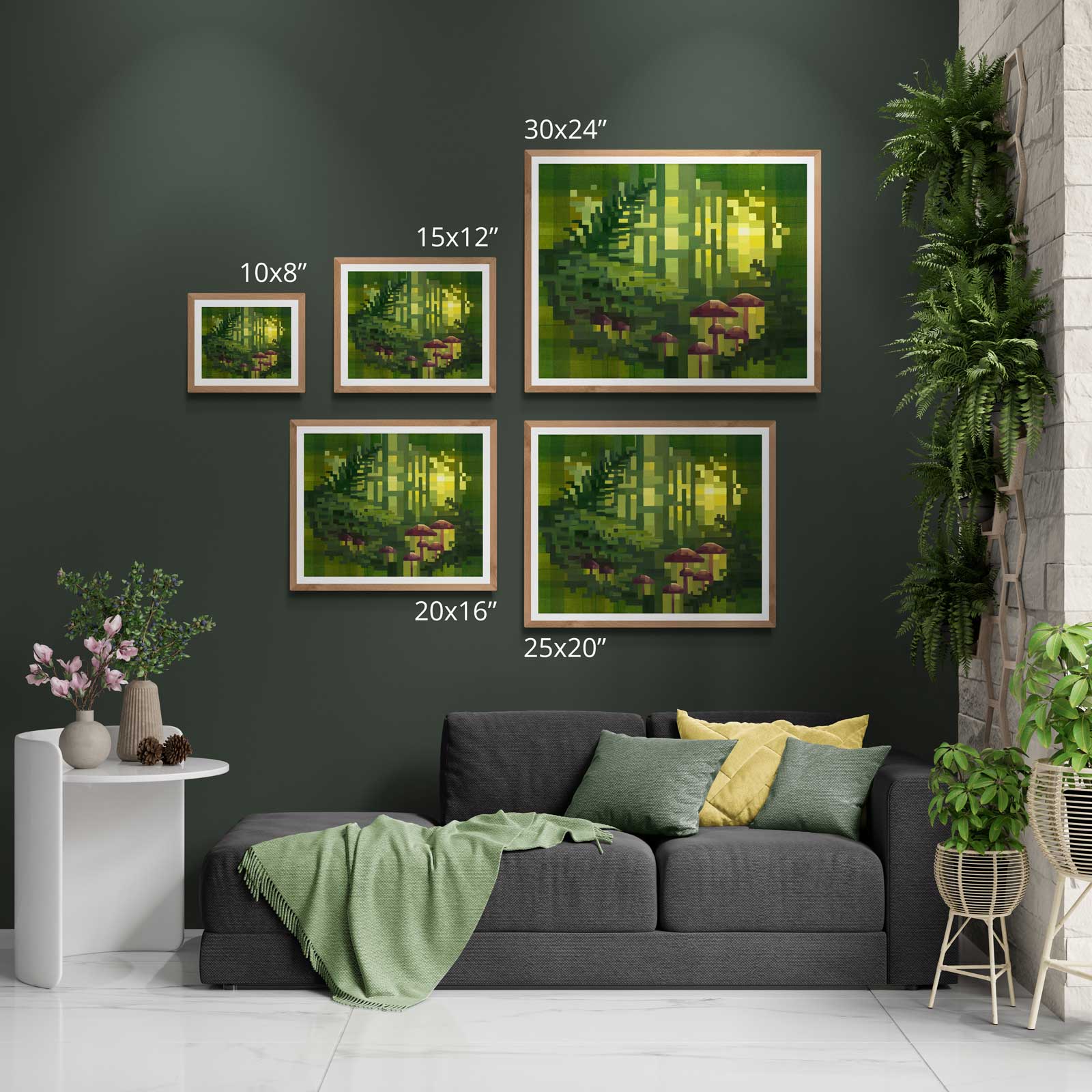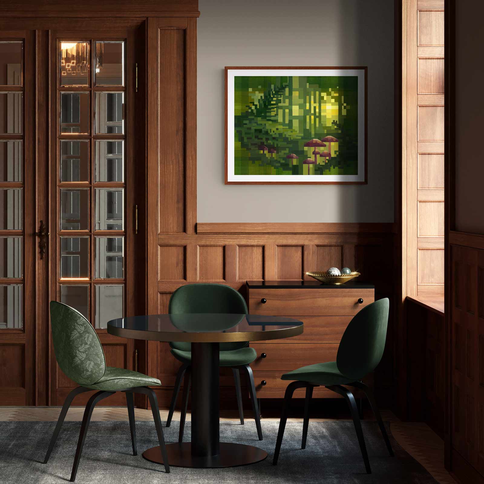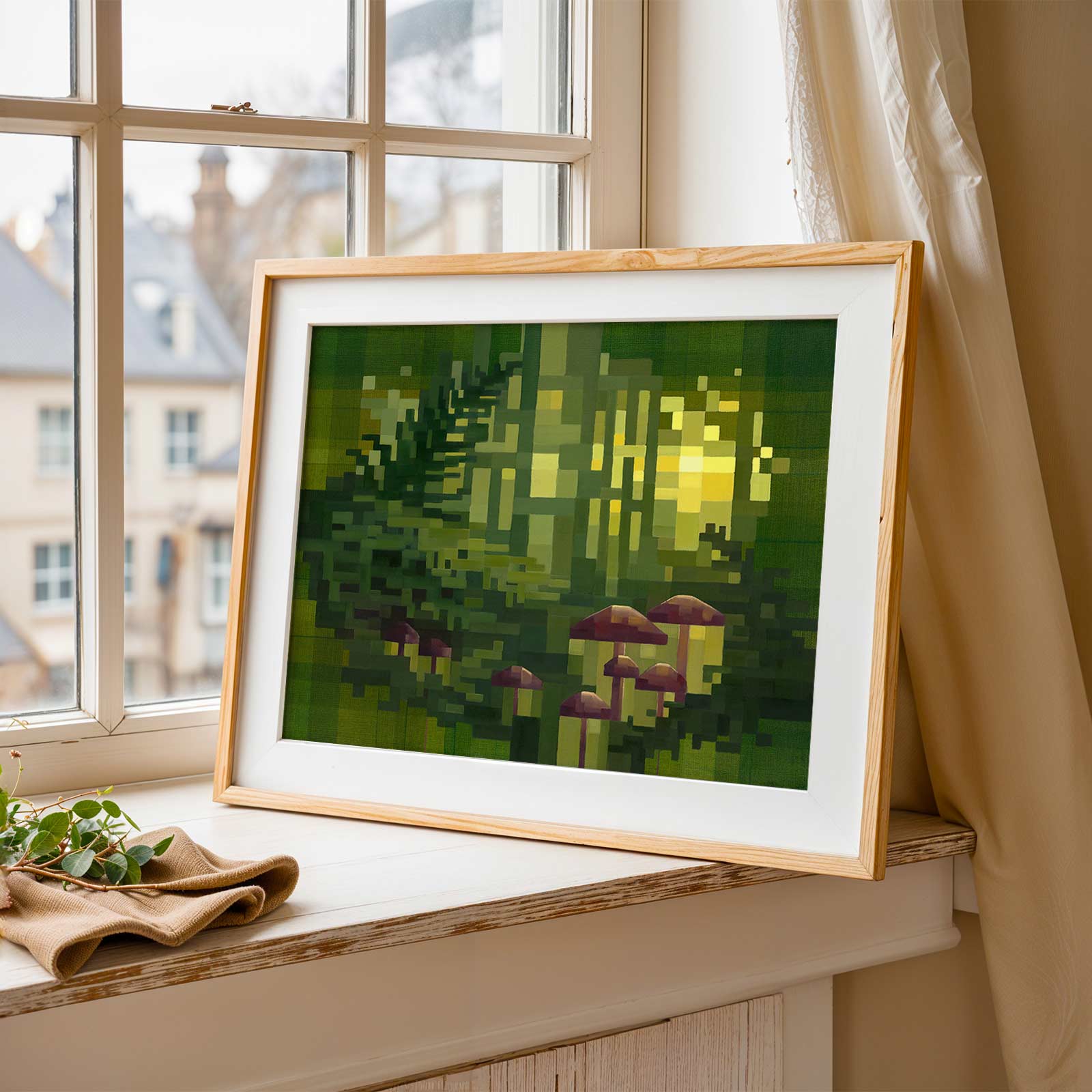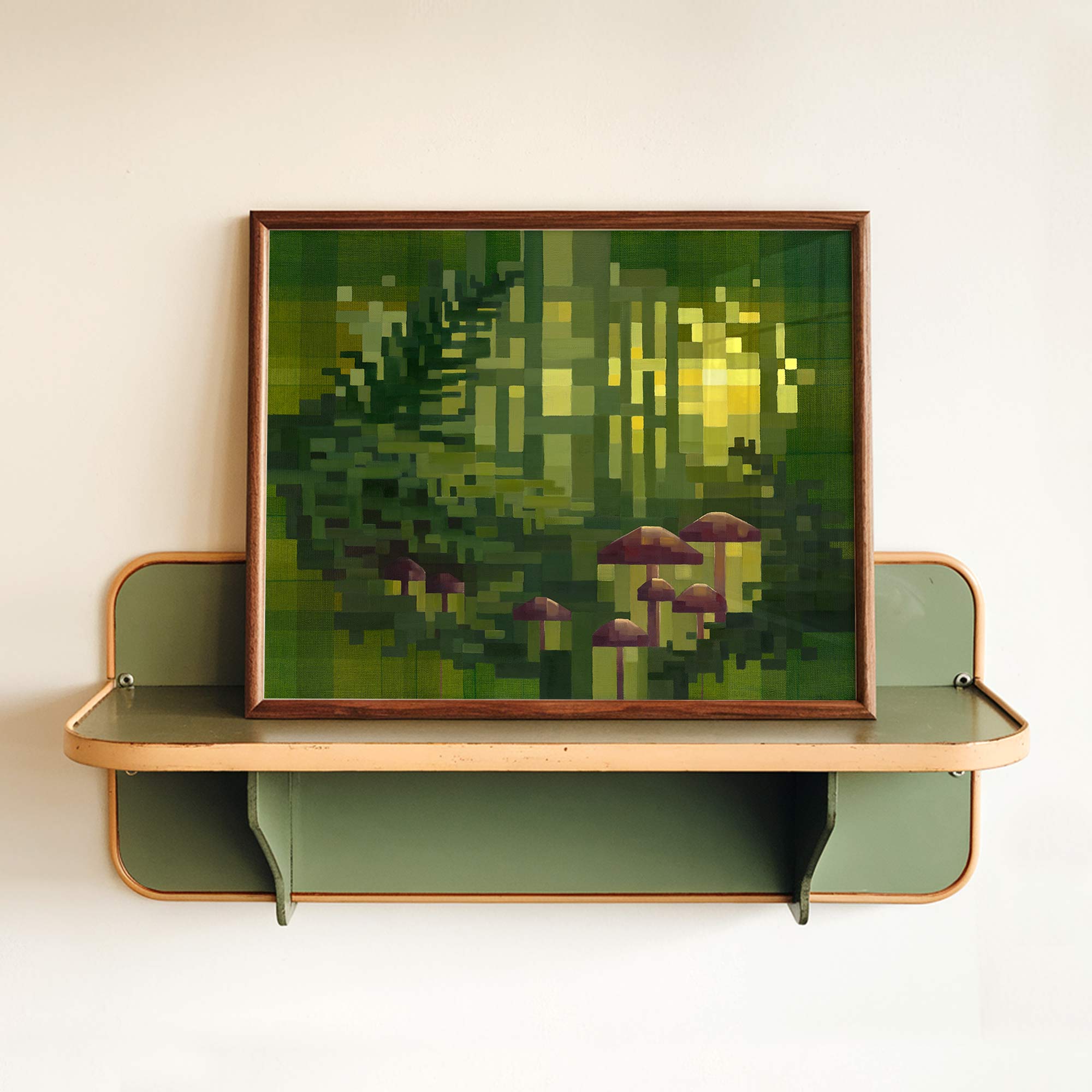 "Fern Watch" makes a thoughtful gift for art lovers, gamers and fans of fantasy, or anyone drawn to the outdoors and nature. My signature pixelated, glitchy style gives the scene a modern twist, blending nature with abstract geometry.