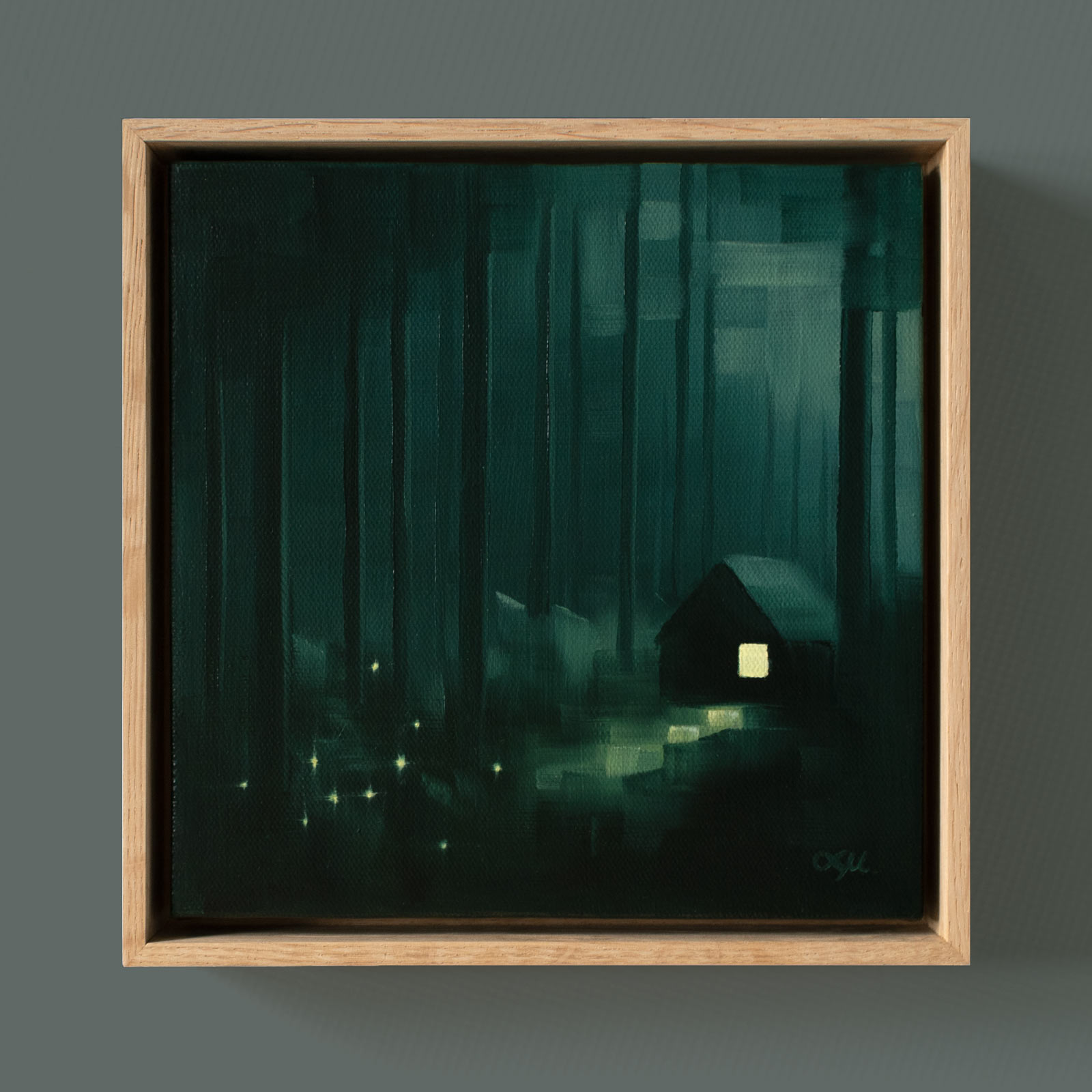 Oil on linen. Framed in an oak floater frame.